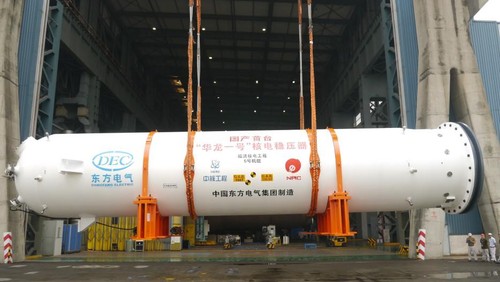東方電氣集團(tuán)為華龍一號(hào)全球首堆提供了常規(guī)島汽輪機(jī)、發(fā)電機(jī)、汽水分離再熱器、凝汽器,核島蒸汽發(fā)生器、穩(wěn)壓器、PRS換熱器、安注箱和硼注箱等關(guān)鍵設(shè)備