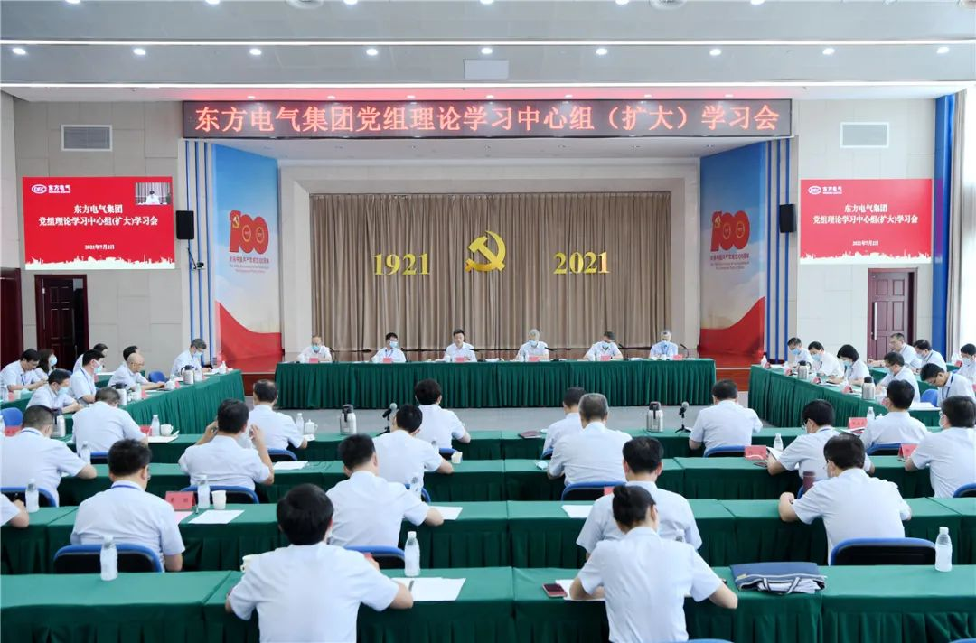 2021年7月2日,東方電氣集團黨組召開理論學習中心組(擴大)會議,深入學習傳達習近平總書記致白鶴灘水電站首批機組投產發(fā)電的賀信精神。