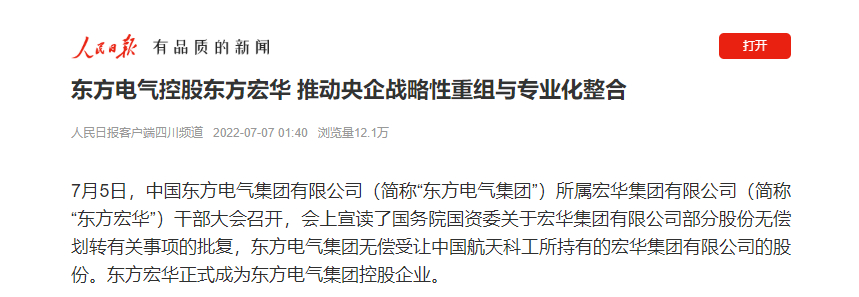 7月5日,中國(guó)東方電氣集團(tuán)有限公司(簡(jiǎn)稱“東方電氣集團(tuán)”)所屬宏華集團(tuán)有限公司(簡(jiǎn)稱“東方宏華”)干部大會(huì)召開,會(huì)上宣讀了國(guó)務(wù)院國(guó)資委關(guān)于宏華集團(tuán)有限公司部分股份無(wú)償劃轉(zhuǎn)有關(guān)事項(xiàng)的批復(fù),東方電氣集團(tuán)無(wú)償受讓中國(guó)航天科工所持有的宏華集團(tuán)有限公司的股份。東方宏華正式成為東方電氣集團(tuán)控股企業(yè)。