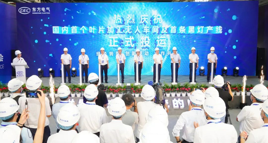 8月25日上午,國內首個(gè)葉片加工無(wú)人車(chē)間及首條黑燈產(chǎn)線(xiàn)投運儀式在東方汽輪機舉行。隨著(zhù)一鍵啟動(dòng),AGV小車(chē)、機器人、數控加工中心等一系列智能設備,在數據驅動(dòng)下智慧運行,標志著(zhù)國內首個(gè)葉片加工無(wú)人車(chē)間及首條黑燈產(chǎn)線(xiàn)正式投運,這里也是2022世界清潔能源裝備大會(huì )展示的示范應用場(chǎng)景之一。