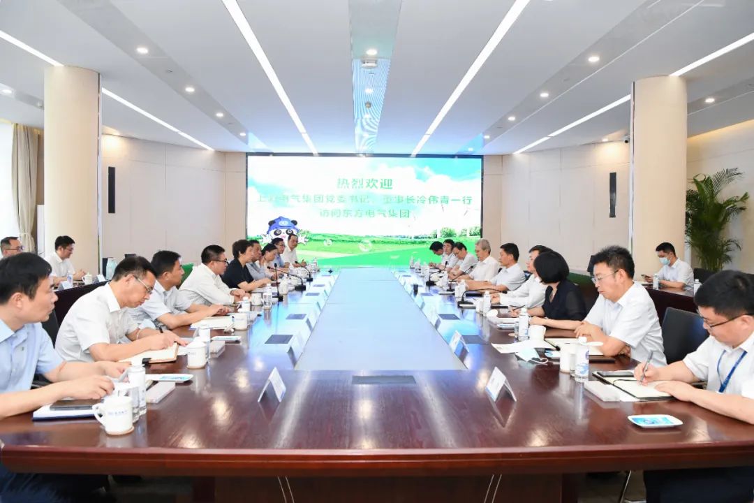 本網(wǎng)訊 8月25日,上海電氣集團(tuán)黨委書記、董事長冷偉青,總裁、黨委副書記劉平一行訪問東方電氣集團(tuán),受到集團(tuán)公司黨組書記、董事長俞培根,總經(jīng)理、黨組副書記徐鵬的熱情接待。雙方就深化交流合作,攜手推動(dòng)能源裝備制造業(yè)高質(zhì)量可持續(xù)發(fā)展,助推“雙碳”目標(biāo)實(shí)現(xiàn)深入交換了意見。東方電氣集團(tuán)黨組成員、副總經(jīng)理李忠軍,上海電氣集團(tuán)黨委委員、副總裁金孝龍參加座談。