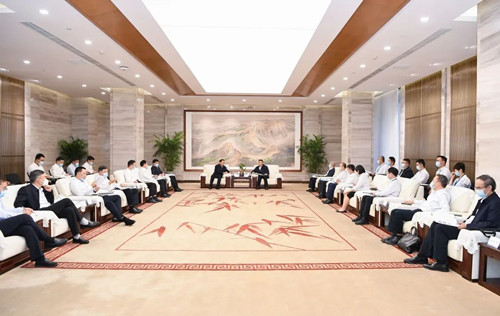 本網(wǎng)訊 9月27日,國(guó)家電網(wǎng)有限公司黨組書(shū)記、董事長(zhǎng)辛保安率隊(duì)來(lái)訪(fǎng),受到集團(tuán)公司黨組書(shū)記、董事長(zhǎng)俞培根,總經(jīng)理、黨組副書(shū)記徐鵬的熱情接待。雙方就攜手服務(wù)國(guó)家戰(zhàn)略,推動(dòng)能源清潔低碳轉(zhuǎn)型,發(fā)揮保障能源安全的“國(guó)家隊(duì)”和“頂梁柱”作用,助力“雙碳”目標(biāo)實(shí)現(xiàn)進(jìn)行了深入友好交流。國(guó)家電網(wǎng)黨組副書(shū)記龐驍剛,集團(tuán)公司紀(jì)檢監(jiān)察組組長(zhǎng)、黨組成員袁明剛,黨組成員、副總經(jīng)理李忠軍參加會(huì)談。