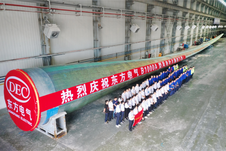 ?近日,東方風(fēng)電自主研制、擁有完全自主知識產(chǎn)權的B1000A型海上風(fēng)電葉片在山東葉片制造基地順利下線(xiàn),該葉片主要配套東方風(fēng)電7-8兆瓦等級海上風(fēng)電機組,具有風(fēng)能捕獲能力優(yōu)、發(fā)電量和安全可靠性高、雷擊防護能力強和度電成本低等特點(diǎn),單支葉片長(cháng)度為100米,是繼B1030A、B1085A型葉片后,東方風(fēng)電下線(xiàn)的又一款百米級風(fēng)電葉片。
