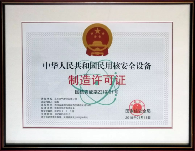 構建核電完整產(chǎn)業(yè)鏈,打造核電設備成套供貨能力是東方電氣人的矢志追求。2019年1月21日,國家核安全局向東方電氣集團頒發(fā)了全國首張核蒸汽供應系統設備制造許可證,標志著(zhù)東方電氣集團成為國內首家具有核蒸汽供應系統設備成套供貨資質(zhì)的裝備制造集團。至此,經(jīng)過(guò)十年努力、五年試點(diǎn),東方電氣核蒸汽供應系統設備成套供貨許可取證工作圓滿(mǎn)完成。東方電氣集團以此為新起點(diǎn),充分發(fā)揮成套供貨優(yōu)勢,嚴格遵守核安全法規,切實(shí)強化核安全文化意識,不斷優(yōu)化管理模式,持續設計制造能力和水平。