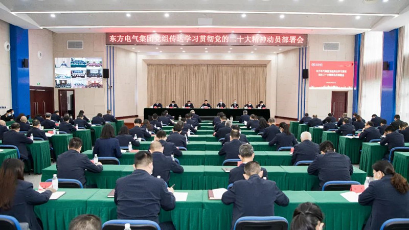 為進(jìn)一步傳達學(xué)習黨的二十大精神,貫徹落實(shí)國務(wù)院國資委黨委部署要求,對全集團齊心協(xié)力抓好抓實(shí)抓細黨的二十大精神的學(xué)習宣傳貫徹工作進(jìn)行動(dòng)員部署,不斷推動(dòng)黨的二十大精神在東方電氣集團進(jìn)一步落地生根、開(kāi)花結果,10月27日下午,東方電氣集團黨組傳達學(xué)習貫徹黨的二十大精神動(dòng)員部署會(huì )召開(kāi)。黨的二十大代表,集團公司黨組書(shū)記、董事長(cháng)俞培根出席會(huì )議并作動(dòng)員講話(huà)。集團公司領(lǐng)導徐鵬、宋致遠、劉智全、張繼烈、袁明剛、張彥軍、李忠軍出席會(huì )議。