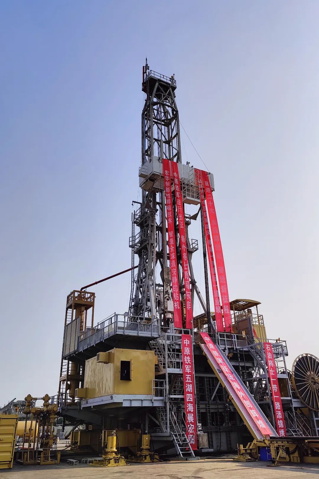 2014年,東方宏華為阿布扎比國(guó)家鉆井公司研制的全球首臺(tái)9000米海洋人工島超深井多排從式井鉆機(jī)開(kāi)始作業(yè),連續(xù)多次打破中東地區(qū)鉆井深度紀(jì)錄。