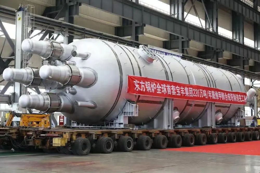 2019年,全球首套寧夏寶豐能源集團(tuán)年產(chǎn)220萬(wàn)噸戴維甲醇合成塔在東方鍋爐德陽(yáng)制造基地完工發(fā)運(yùn)。該甲醇合成塔是當(dāng)時(shí)世界單套煤制甲醇產(chǎn)量最大的甲醇合成塔,也是戴維技術(shù)甲醇合成塔首次國(guó)產(chǎn)化。該產(chǎn)品的成功制造標(biāo)志著,東方鍋爐在大型甲醇合成塔制造領(lǐng)域一舉打破了國(guó)外的壟斷地位,走在了世界的前列。該甲醇合成塔重達(dá)512噸,創(chuàng)造了東方鍋爐單臺(tái)套產(chǎn)品成套出廠噸位的歷史之最。
