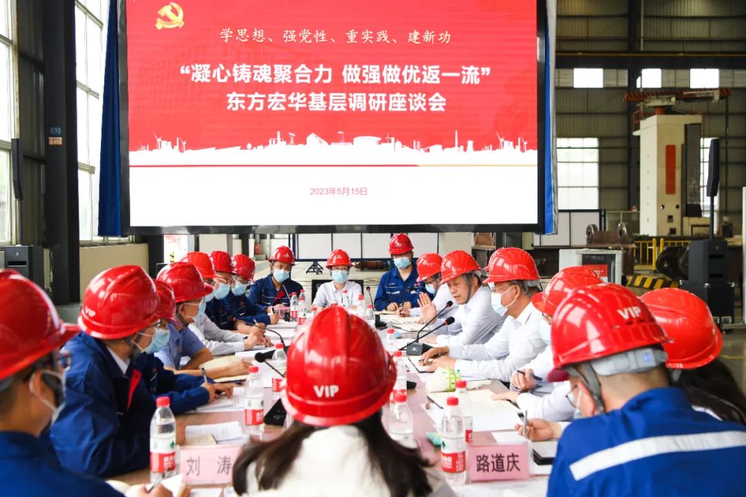 本網(wǎng)訊 5月15日,在出席東方電氣集團(tuán)2023年“學(xué)思想、爭先鋒、謀發(fā)展、建新功”群眾性主題宣傳教育活動啟動會后,集團(tuán)公司黨組書記、董事長俞培根深入東方宏華,圍繞“凝心鑄魂聚合力,做強(qiáng)做優(yōu)返一流”主題,開展主題教育專題調(diào)研。集團(tuán)公司領(lǐng)導(dǎo)宋致遠(yuǎn)、孫國君、張彥軍、李忠軍一同調(diào)研。