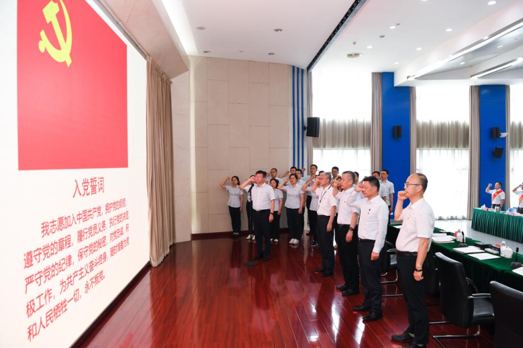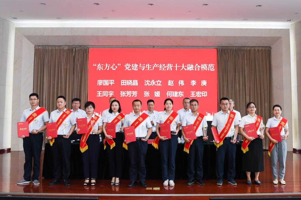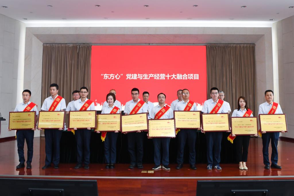 面向黨旗,新黨員代表入黨宣誓,全體參會黨員重溫入黨誓詞。會議發(fā)布了《集團公司黨建與生產(chǎn)經(jīng)營深度融合“四級五步五法”工作導(dǎo)則》,表彰了集團公司“東方心”黨建與生產(chǎn)經(jīng)營十大融合項目和十大融合模范。