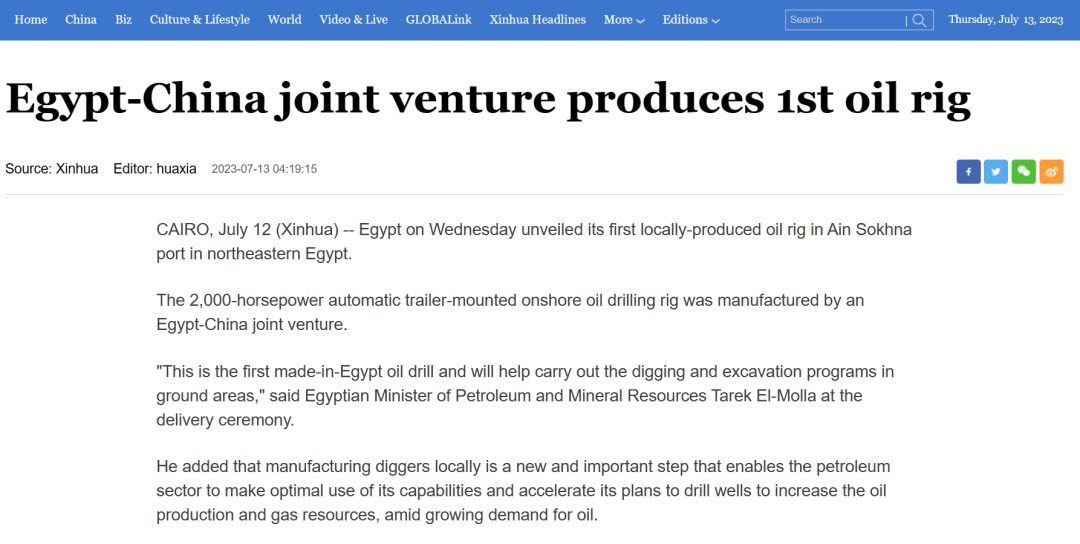 活動(dòng)當(dāng)天,埃及石油與礦產(chǎn)資源部在Facebook中介紹了本次交付儀式。埃及能源行業(yè)主流媒體《石油的未來(lái)》刊登了題為《在Tarek El-Molla時(shí)代,EPHH是如何成功制造埃及和中東的第一款陸地鉆機(jī)的?》的報(bào)道,介紹了在EPHH(宏華埃及)的支持下,埃及逐漸實(shí)現(xiàn)鉆機(jī)本土制造的創(chuàng)舉,此次重大成就不僅為當(dāng)?shù)靥峁┝素S富的就業(yè)機(jī)會(huì),還進(jìn)一步擴(kuò)大了EPHH(宏華埃及)在埃及和中東的影響力。
