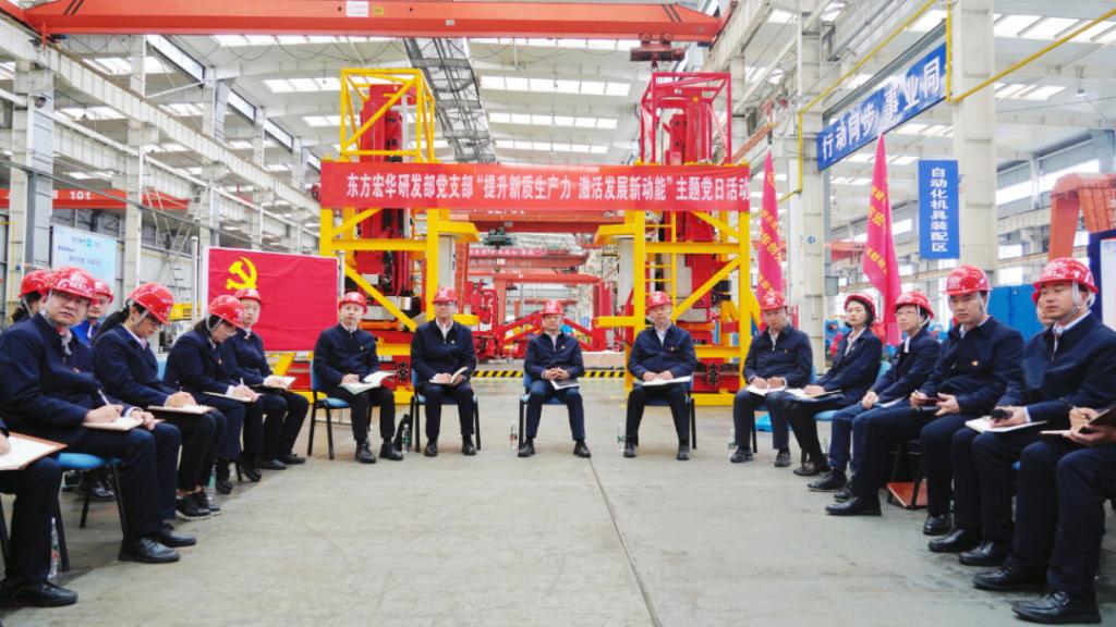 本網(wǎng)訊 4月9日,東方電氣集團黨組書(shū)記、董事長(cháng)俞培根參加聯(lián)系基層黨支部——東方宏華研發(fā)部黨支部“提升新質(zhì)生產(chǎn)力,激活發(fā)展新動(dòng)能”主題黨日活動(dòng)。研發(fā)部黨支部黨員代表、青年代表和黨外人士代表參加活動(dòng)?;顒?dòng)采取沉浸式與互動(dòng)式相結合的方式,在東方宏華零部件車(chē)間現場(chǎng)開(kāi)展。