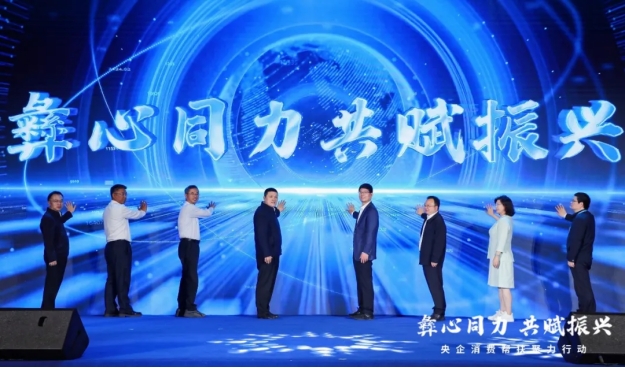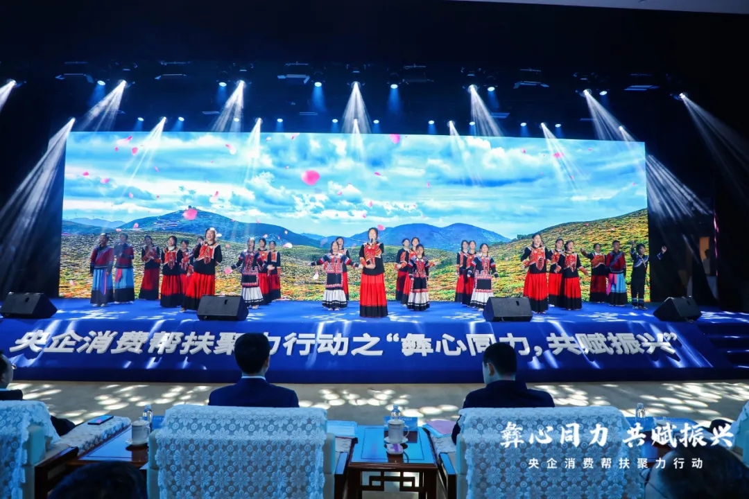 與會(huì )領(lǐng)導共同為央企消費幫扶聚力行動(dòng)之“彝心同力 共賦振興”購物節按下啟動(dòng)鍵。
